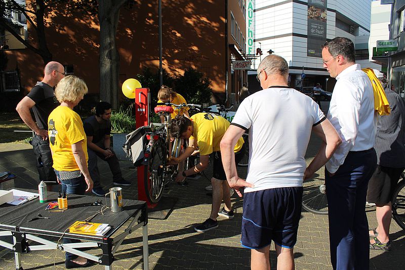 Von der Mainzerin Nora Weisbrod im Jahr 2003 ins Leben gerufen, steht die Bereitschaft junger Menschen, die sich sozial engagieren möchten, im Mittelpunkt. Doris Ahnen hat sich auch 2017 wieder Zeit genommen, die Kampagne durch ihre Mitarbeit zu unterstützen. Gemeinsam mit dem Mainzer Oberbürgermeister Michael Ebling und vier Schülerinnen und Schülern sowie dem FSJ-Team der Aktion Tagwerk half sie im Fahrradladen „Die Radgeber“ mit, den Luftdruck bei Fahrrädern zu überprüfen, die Kette zu ölen und kleine Reparaturmaßnahmen vorzunehmen. Doris Ahnen: Gerne unterstütze ich die Aktion ‚Dein Tag für Afrika’ seit vielen Jahren, um dazu beizutragen, Bildungsprojekte für Kinder und Jugendliche in verschiedenen Ländern Afrikas zu ermöglichen. Mein herzlicher Dank gilt dem Team der Aktion Tagwerk, den vielen beteiligten Schülerinnen und Schülern sowie den Arbeitgeberinnen und Arbeitgebern, die diesen ‚Tag für Afrika’ gemeinsam möglich und erfolgreich machen.“