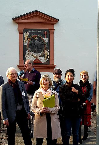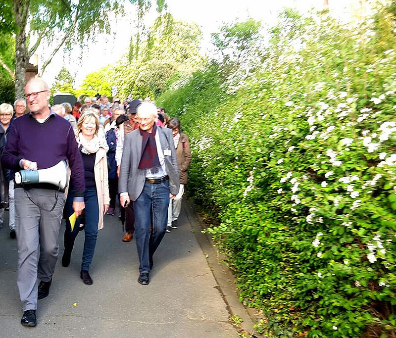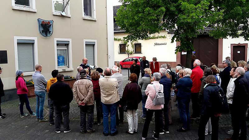 Darüber, über andere längst gewandelte Orte oder aber auch über die Spuren, die Napoleon auf dem Bergfriedhof hinterlassen hat, hat der „Ur-Hexemer“ Ottmar Schwinn auf Einladung der Mainzer Landtagsabgeordneten Doris Ahnen (SPD) am Freitag, 10. Mai 2019, bei einem Rundgang durch den Stadtteil erzählt. Gut 70 Gäste waren der Einladung Ahnens unter dem Titel „Hechtsheims unbekannte Ecken“ gefolgt. Über das einst ausgeprägte jüdische Leben und die Synagoge im Stadtteil konnten die Anwesenden dabei ebenso Wissenswertes in Erfahrung bringen wie über den bei Alt und Jung als Treffpunkt beliebten „Dalles“, den „Napoleonstein“ auf dem Friedhof, die Schulen in Hechtsheim sowie über die Wasserversorgung am Oberen Born oder das Gemeinde-Backhaus aus dem 18. Jahrhundert. Und so schlängelten sich alteingesessene Hechtsheimerinnen und Hechtsheimer und Bürgerinnen und Bürger, die erst seit einigen Jahren im Stadtteil leben, vom „Dragoner“-Standbild an der Straßenbahn-Endhaltestelle über die Synagogenstraße hinauf zur katholischen Pfarrkirche St.-Pankratius und von dort über den Oberen Born zum Lindenplatz in der Hechtsheimer Ortsmitte, wo im Rahmen des Ausklangs bei dem bei ein oder anderen Glas Wein noch ausführlich über das heutige Leben in Hechtsheim gesprochen wurde.