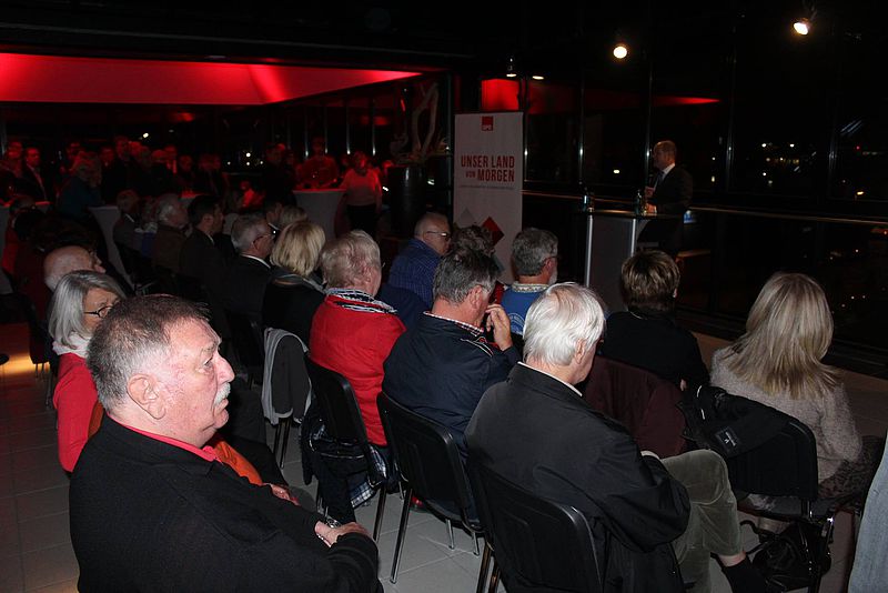 Im Anschluss an den Vortrag von Olaf Scholz beteiligten sich die Gäste des Abends mit Fragen aus allen Politikfeldern an der Diskussionsrunde. Ein spannender, informativer und kurzweiliger Abend, so dankten die Abgeordneten Doris Ahnen und Johannes Klomann abschließend Olaf Scholz für seinen Besuch in Mainz.