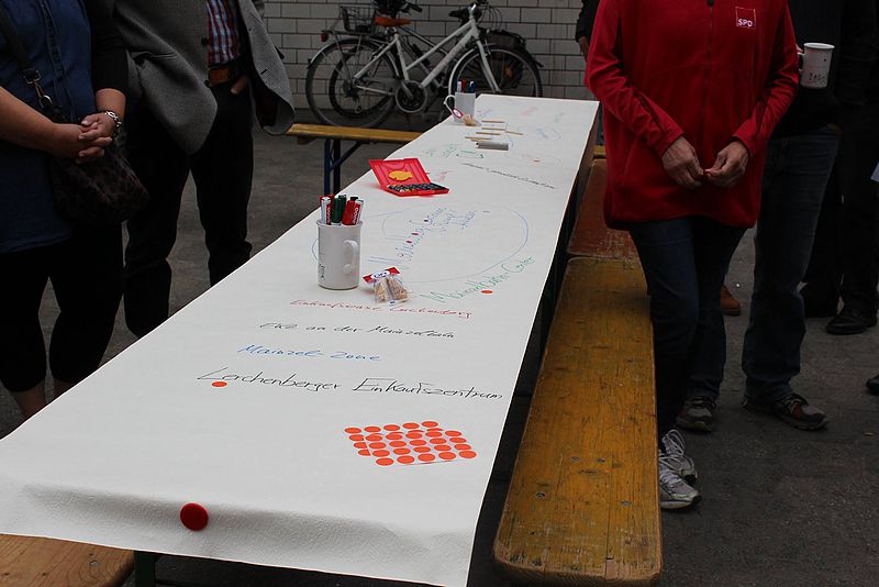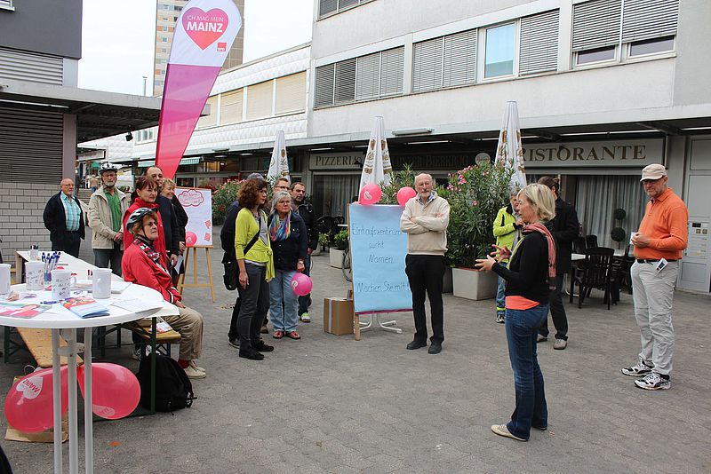 Los ging es auf dem Lerchenberg, wo die örtliche SPD gemeinsam mit Bürgerinnen und Bürgern unter dem Motto „Einkaufszentrum sucht Namen“ kreative Namensvorschläge für das Einkaufszentrum sammelte. In Drais gewährte ein historischer Ortsrundgang unter Führung von Dr. Matthias Dietz-Lenssen tiefere Einblicke in die Draiser Geschichte.