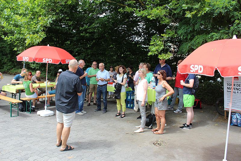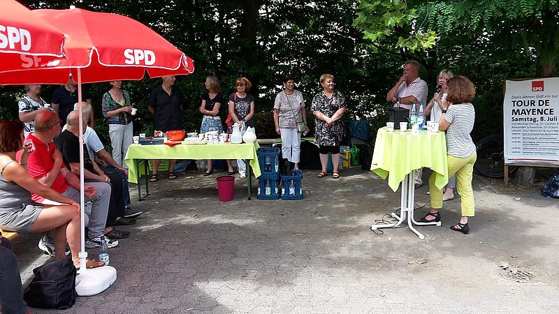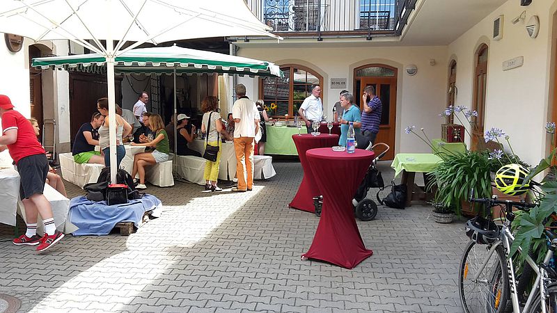 Über Marienborn radeln die Teilnehmerinnen und Teilnehmer die letzten Kilometer bis zum Winzerhof des Weinguts Heinz Lemb in Hechtsheim, wo die Vorsitzende der Mainzer Winzer, Sigrid Lemb-Becker die Teilnehmerinnen und Teilnehmer gemeinsam mit Michael Ebling erwartet. Bei Spundekäs', Brezeln, Käsebrötchen sowie Hechtsheimer Wein und Traubensaft klingt die knapp 20 Kilometer lange Radtour aus. „Ein gelungener, ein interessanter Tag“, so das Fazit von Doris Ahnen. „Wir haben gespürt, unsere Stadtteile sind voller Leben und Engagement. Sie wissen um ihre Geschichte und ihren Charme beziehen sie aus ihren Geschichten, den kleinen Geschichtcher aus dem früheren und heutigen Alltag der Menschen.“