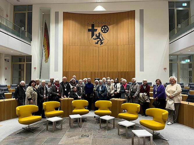 Im Mittelpunkt des Besuchsprogramms standen dabei die Besichtigung des Plenarsaals im historischen „Deutschhaus“ und eine anregende Diskussionsrunde im Anschluss. „Vielen Dank für den Nachmittag und den intensiven Austausch“, dankte Doris Ahnen ihren Gästen für einen unterhaltsamen Landtagsbesuch.
